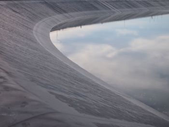 "Geomembranes are manmade, low-permeability membrane liners or barriers formed into thin sheets used to control the migration of a fluid. A common application of geomembranes includes seepage barriers for geotechnical structures constructed essentially with soil and/or rock such as embankment dams. Geomembrane is a generic term that has been proposed to replace many terms such as synthetic membranes, polymeric membranes, plastic liners, flexible membrane liners, impermeable membranes, and impervious sheets."[1]
